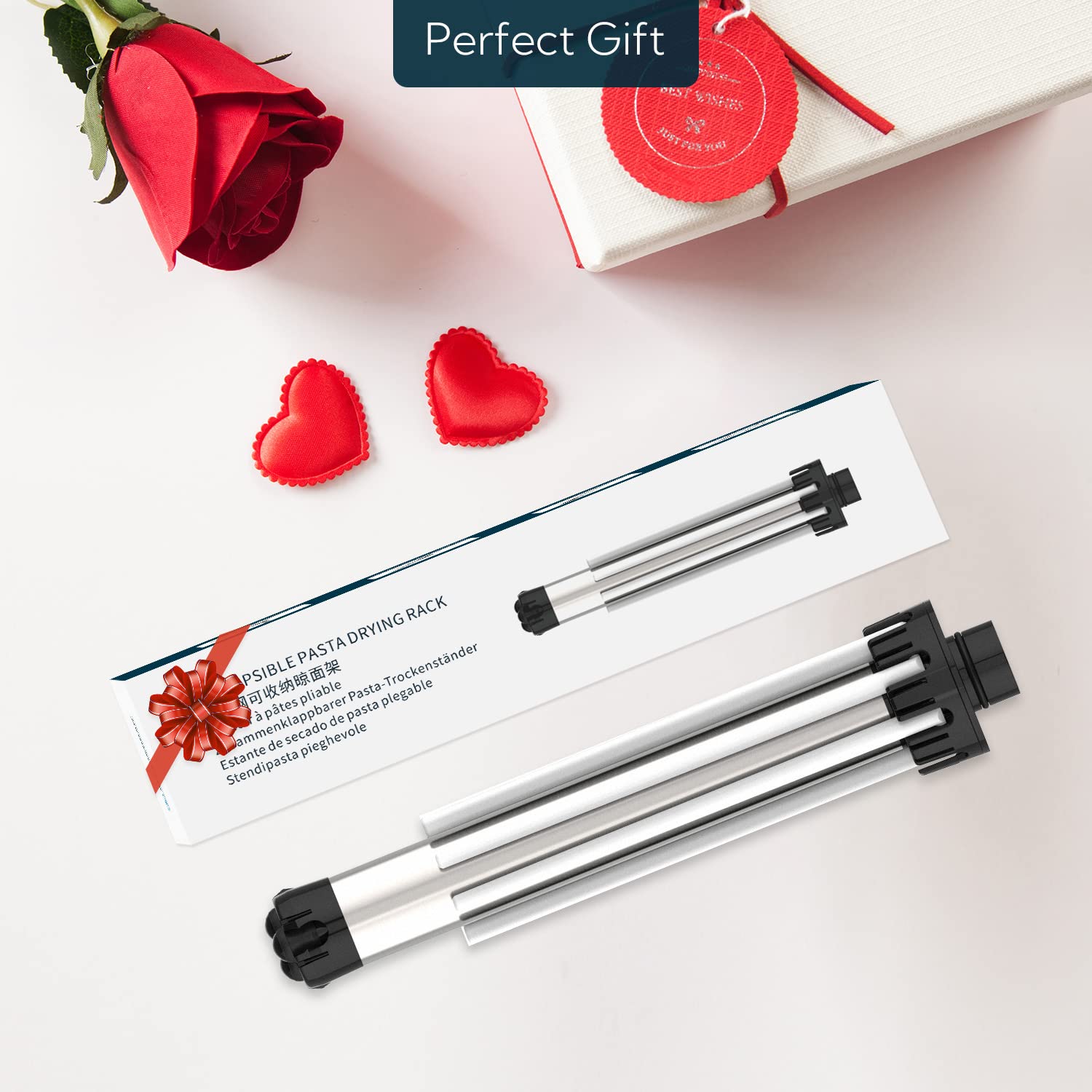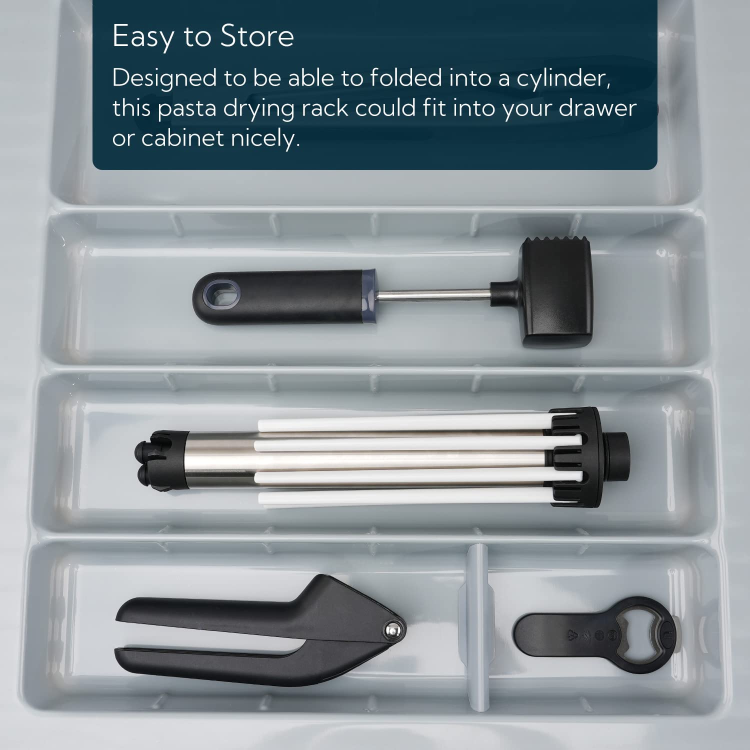 Dry your homemade pasta with ease using the KITCHENDAO Collapsible Pasta Drying Rack. This innovative pasta hanger features a compact, collapsible design for easy storage, fitting neatly into drawers or cabinets. The rack is equipped with eight sturdy rods that can carry up to 5 pounds of pasta, making it ideal for large batches of noodles.