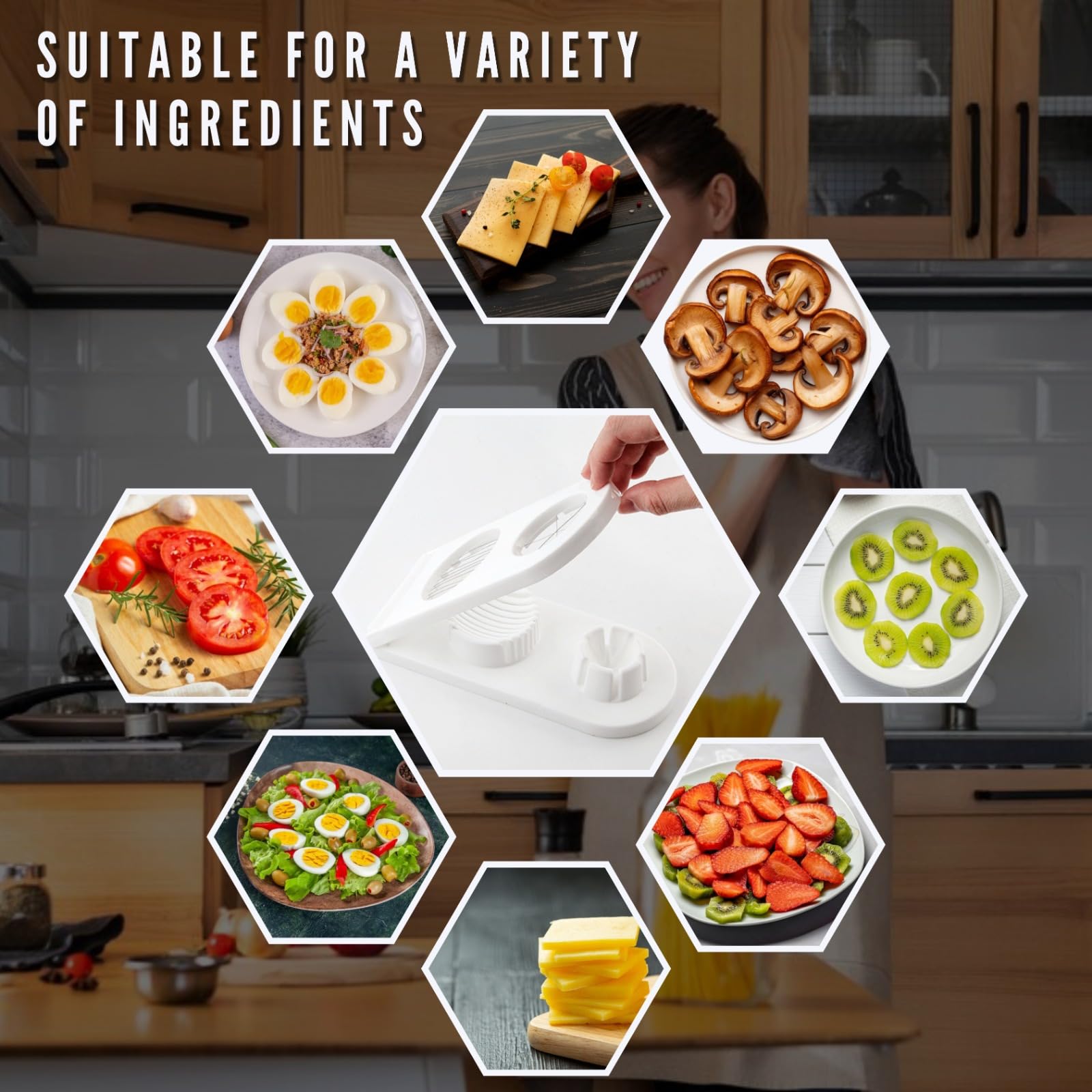 Details: Experience the ultimate convenience and versatility with our 2-in-1 egg slicer! This handy tool effortlessly slices and cuts hard-boiled eggs, offering both functions in one sleek design. Crafted with durable stainless steel wires, it ensures precise and uniform slices every time, making it perfect for preparing salads, sandwiches, and more. But its functionality doesn't stop there - our multipurpose egg slicer is also ideal for slicing mushrooms, strawberries, cheese, and kiwis, giving you endless possibilities in the kitchen.