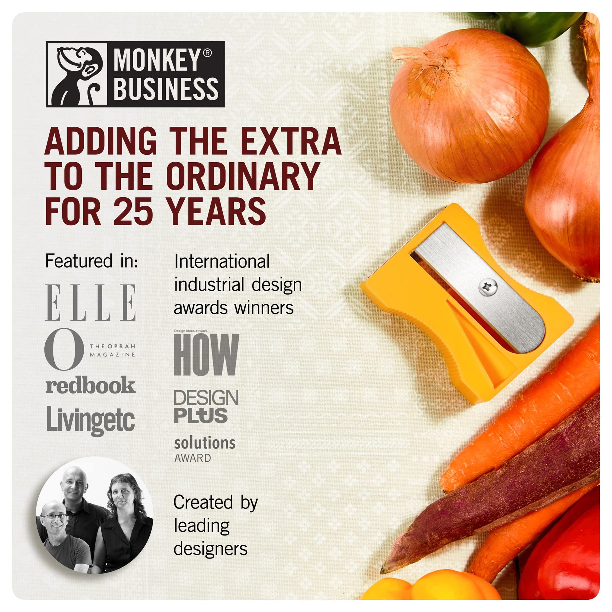 Transform your kitchen routine with the Monkey Business Karoto Vegetable Peeler. This innovative peeler is designed to create beautiful vegetable ribbons and curls, adding a touch of creativity to your meals. Ideal for peeling and slicing a variety of vegetables, including carrots, potatoes, zucchinis, and more, this peeler makes it easy to prepare healthy and visually appealing dishes. The ergonomic design ensures a comfortable grip, while the durable materials guarantee long-lasting performance. Easy to clean and dishwasher safe, the Monkey Business Karoto Vegetable Peeler is a fun and functional addition to any kitchen. It also makes a perfect gift for cooking enthusiasts and foodies who love to experiment with their culinary creations.