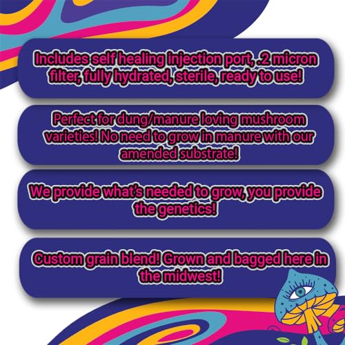 Experience the joy of homegrown mushrooms with the Booming Acres Magical All-In-One Bag. This incredible kit is designed for simplicity and high yield, perfect for both novice and experienced growers. Each bag comes fully hydrated, sterile, and ready to use with an injection port and a breathable .2 micron filter. Ideal for a wide range of gourmet and medicinal mushroom varieties that thrive on manure or dung, this kit has everything you need for a successful harvest.