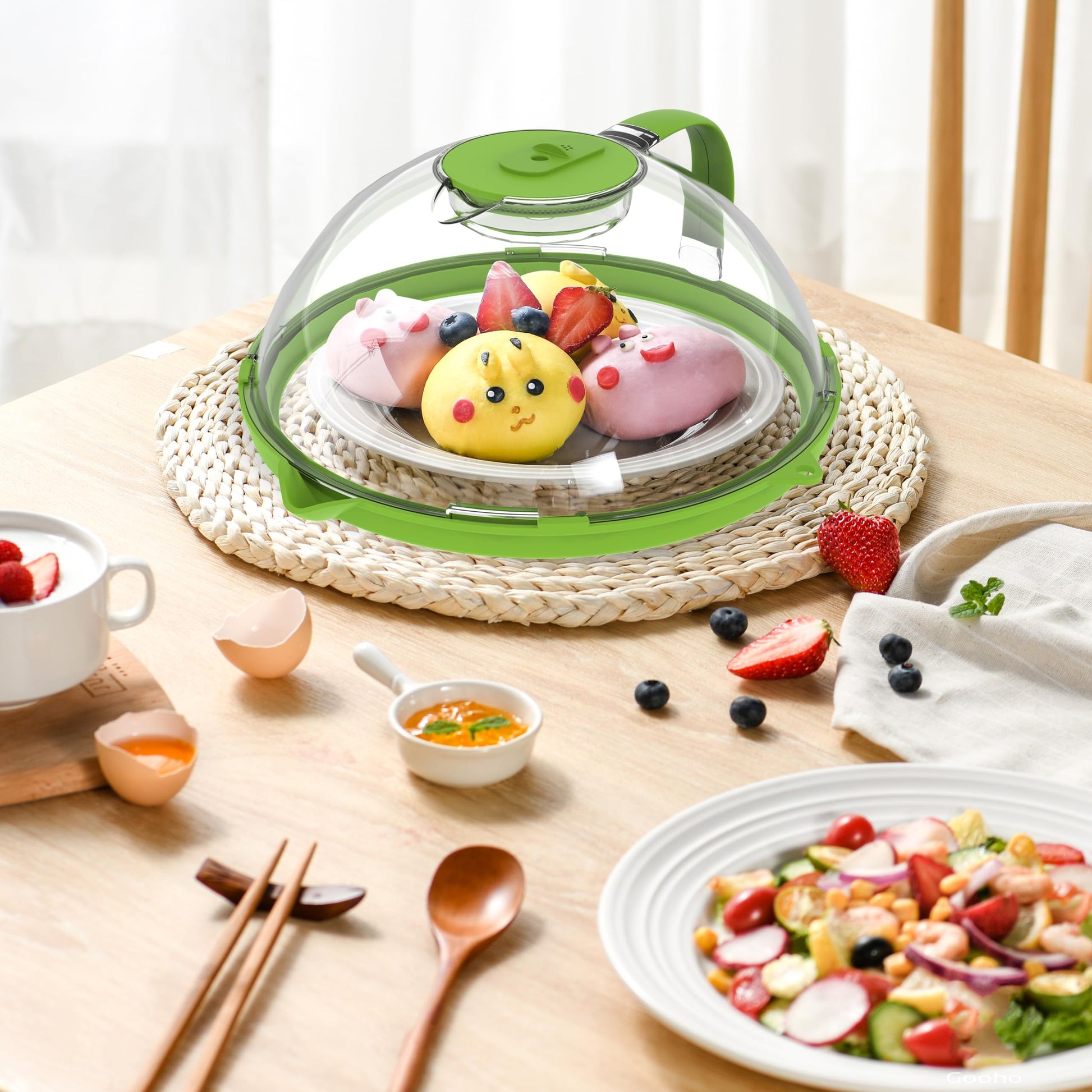 Featuring an upgraded integrated handle design, the LOKAYER microwave cover provides greater insulation and safety while handling hot dishes. The detachable bottom plate ensures your hands are protected from burns, making it easy to use and clean. This versatile cover can be used to keep food warm, as an outdoor food cover, or for keeping food fresh in the refrigerator. It's a practical gift idea for housewarmings, new homes, Christmas, and birthdays.