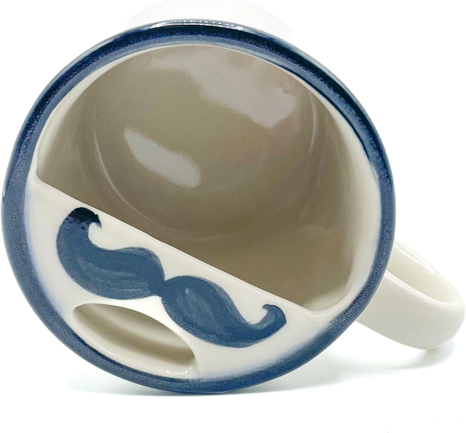 Keep your mustache clean and stylish while enjoying your favorite beverages with the Taconic Shave Mustache Guard Mug. This 12-ounce stoneware mug is designed with a unique mustache guard to protect your mustache from getting wet or messy. Handmade by skilled artisans in the USA, each mug is crafted with meticulous attention to detail, from molding to glazing and painting.