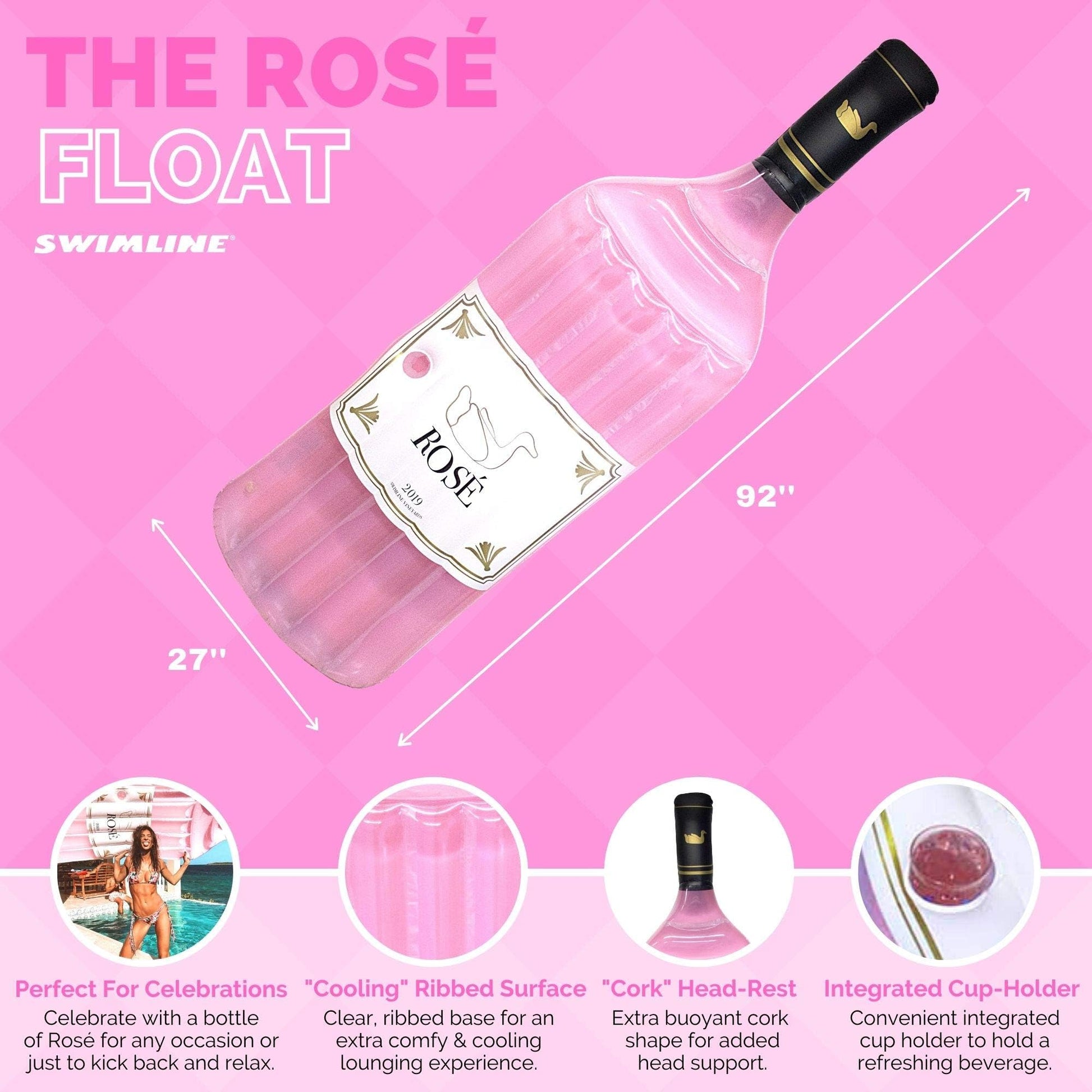 Luxuriate under the sun with the Swimline Rosé Bottle Pool Float, the perfect accessory for pool lovers and wine enthusiasts alike. This stylish pool float is designed to resemble an elegant bottle of rosé wine, complete with a ribbed base construction that creates a comfortable lounging experience. The cap serves as an extra buoyant pillow headrest, providing added support for your head as you relax on the water.